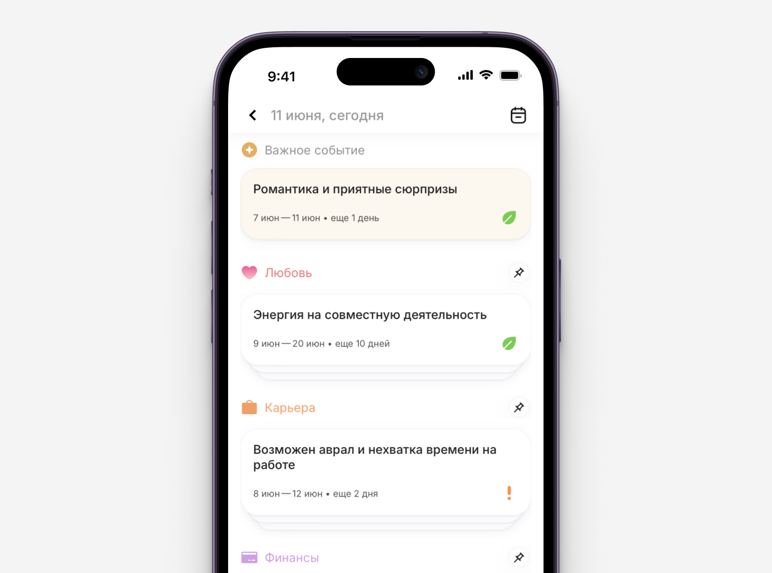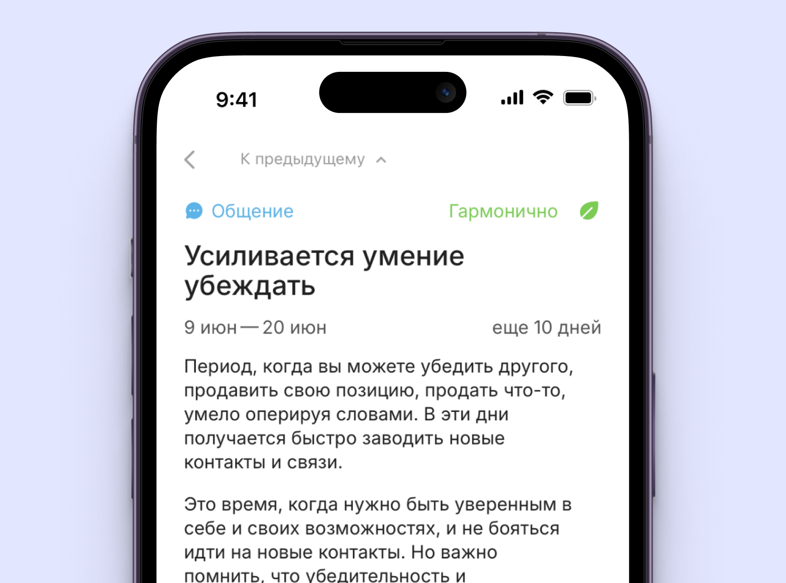 Также очень удобные советы и тренды по разным сферам жизни, с указанием важности, напряженности и гармоничности тренда. Очень нравится, что в случае напряженного тренда даются советы по гармонизации напряженного периода.